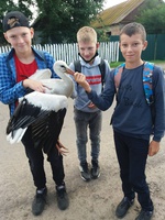 Повертаючись додому після занять школярі стали свідками того, що діти б'ють лелеку, а той не може втекти. Михайло, Максим та Денис забрали птаха і віддали його працівникам Рівненського природного заповідника, тим самим врятувавши лелеці життя.