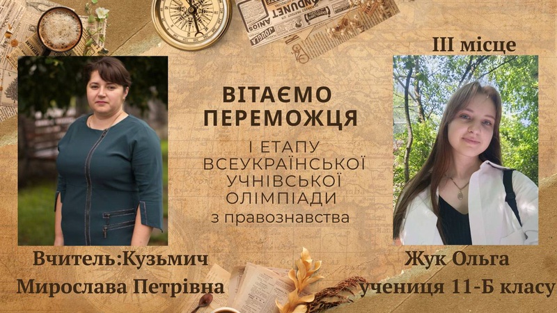 Вітаємо призера І етапу Всеукраїнської учнівської олімпіади з правознавства
