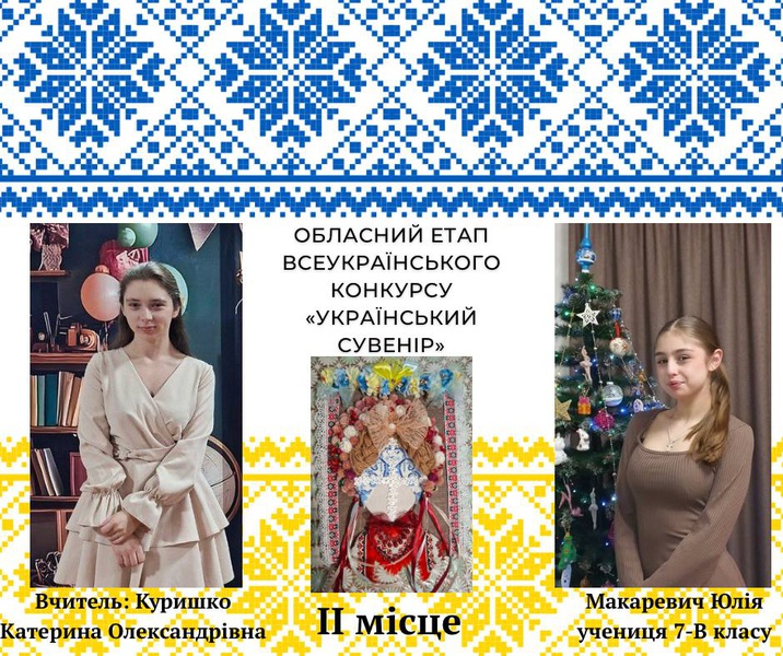 Вітаємо Юлію МАКАРЕВИЧ, ученицю 7-В класу, із почесним ІІ місцем на обласному етапі Всеукраїнської виставки-конкурсу "Український сувенір"! Юля створила крутий арт-об’єкт, у якому автентичні традиції гармонійно поєдналися із сучасним поглядом. Ця робота вкотре доводить: українське — це стильно та актуально! Пишаємося таким талантом і разом із наставником бажаємо нових творчих злетів у 2026 році!